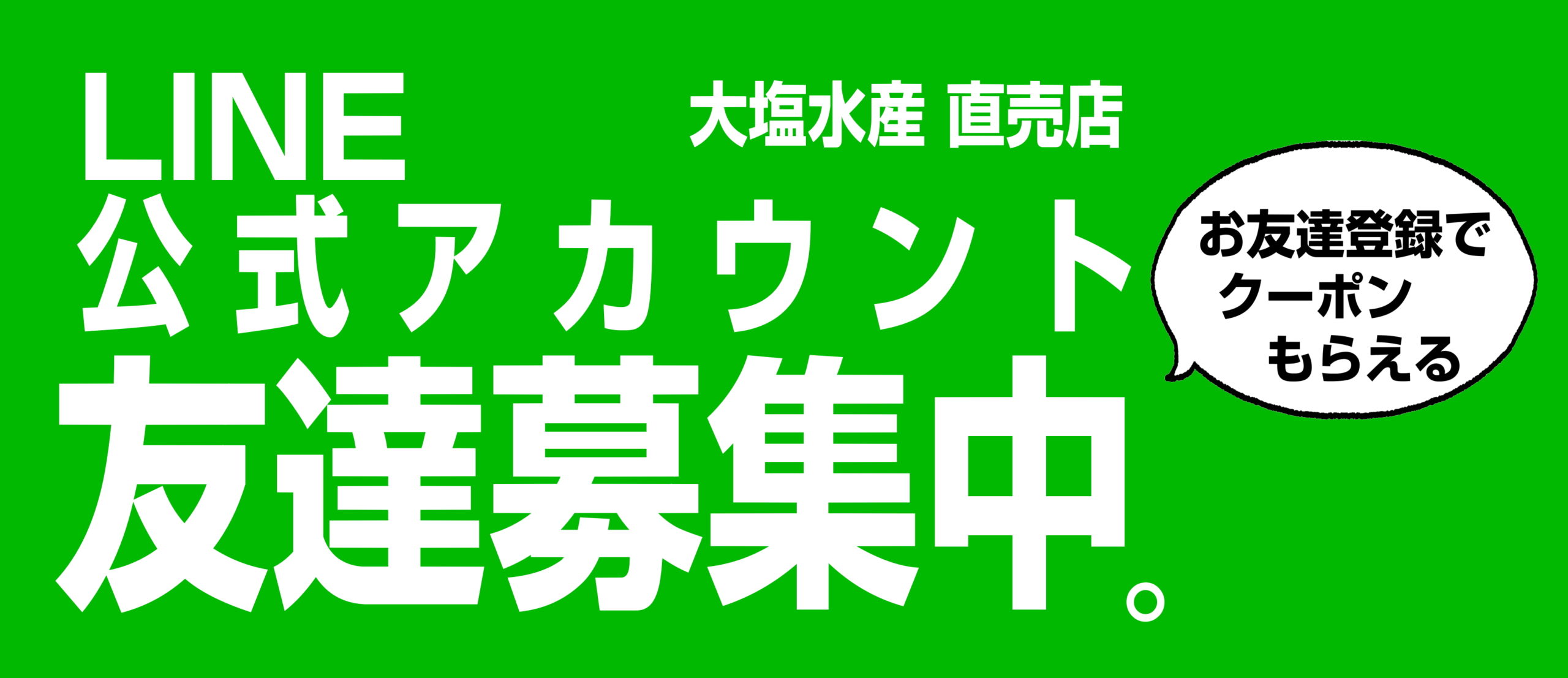 大塩水産 直売店のLINE公式アカウントでは、お友達を募集中です。